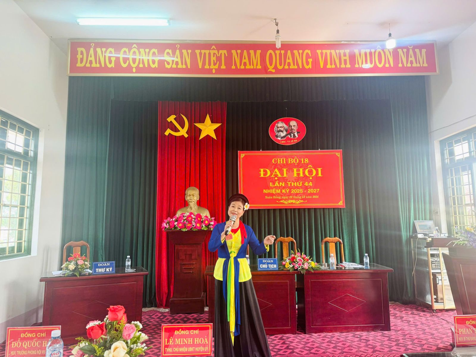 Thi hành Điều lệ Đảng Cộng sản Việt Nam, thực hiện kế hoạch của Đảng uỷ xã Xuân Hồng về Đại hội các chi bộ trực thuộc Đảng uỷ cơ sở, trong các ngày từ 21/12/2024 đến 22/12/2024 tại Hội trường Trường THCS Đặng Xuân Khu đã diễn ra Đại hội chi bộ 18, Trường THCS Đặng Xuân Khu lần thứ 44 nhiệm kì 2025-2027, đây là Đại hội chi bộ điểm của Đảng bộ xã Xuân Hồng nhằm rút kinh nghiệm công tác Đại hội các chi bộ cơ sở trực thuộc Đảng uỷ xã.