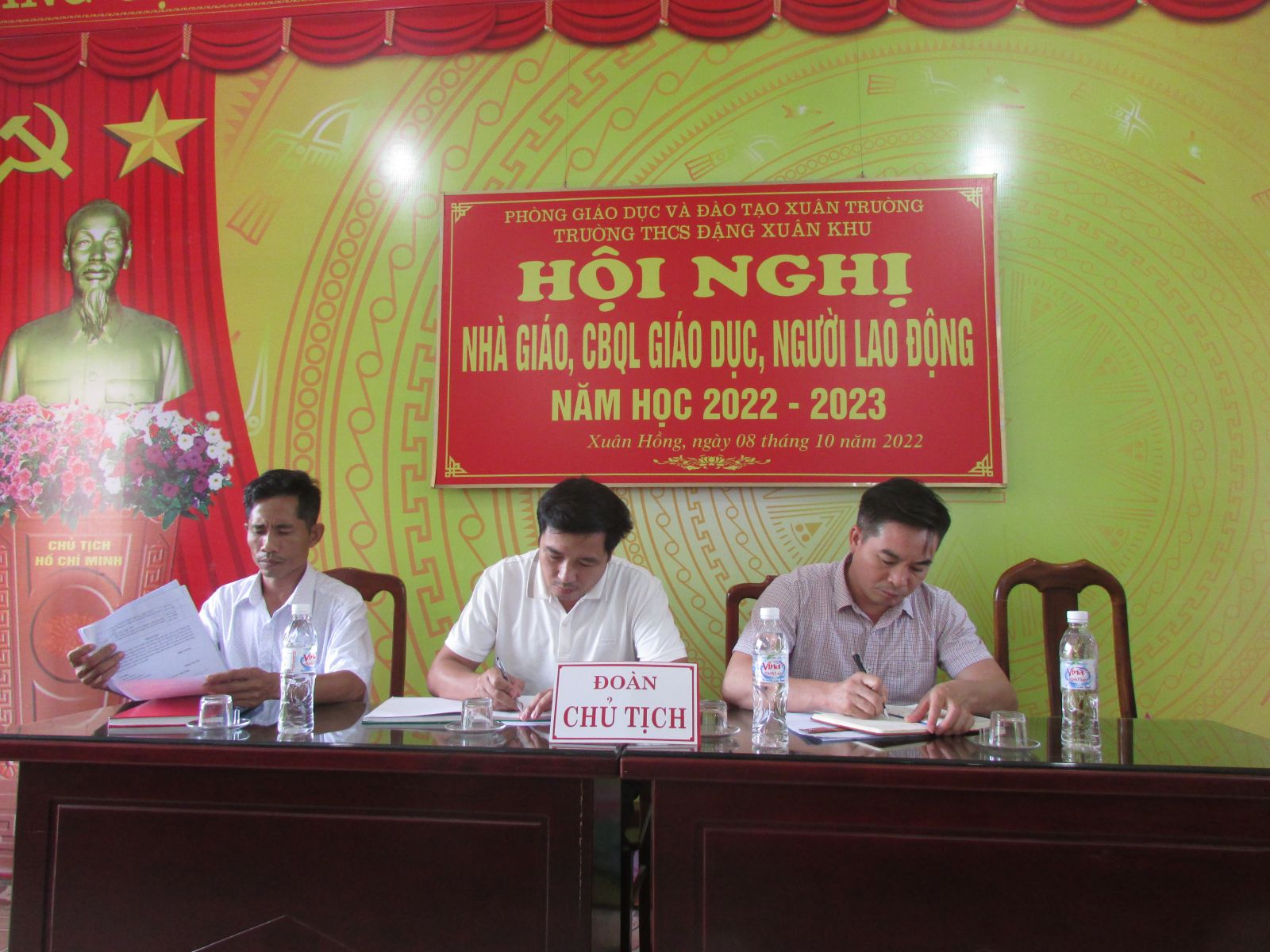 Trong không khí phấn khởi của năm học mới, thực hiện sự chỉ đạo cuả Phòng GD&ĐT Xuân Trường, chiều 08/10/2022, Trường THCS Đặng Xuân Khu đã long trọng tổ chức Hội nghị Nhà giáo, cán bộ quản lí giáo dục và người lao động năm học 2022-2023.
