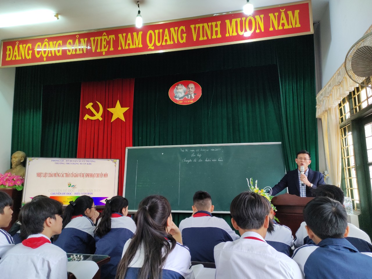 Thực hiện công văn hướng dẫn của Phòng GD&ĐT Xuân Trường, sự chỉ đạo của Ban giám hiệu trường THCS Đặng Xuân Khu, chiều 22 tháng 02 năm 2023, tại Trường THCS Đặng Xuân Khu đã tổ chức sinh hoạt chuyên môn chuyên đề môn Ngữ văn 9. Về dự, chỉ đạo sinh hoạt chuyên môn có thầy Trần Hữu Khánh – Phó trưởng phòng GD&ĐT Xuân Trường, cô giáo Nguyễn Thị Thao Chúc, Chuyên viên Phòng GD&ĐT, các thầy cô giáo giảng dạy bộ môn Ngữ văn trong toàn huyện. Về phía nhà trường có sự có mặt của các thầy trong Ban giám hiệu, tổ chuyên môn Văn Sử.